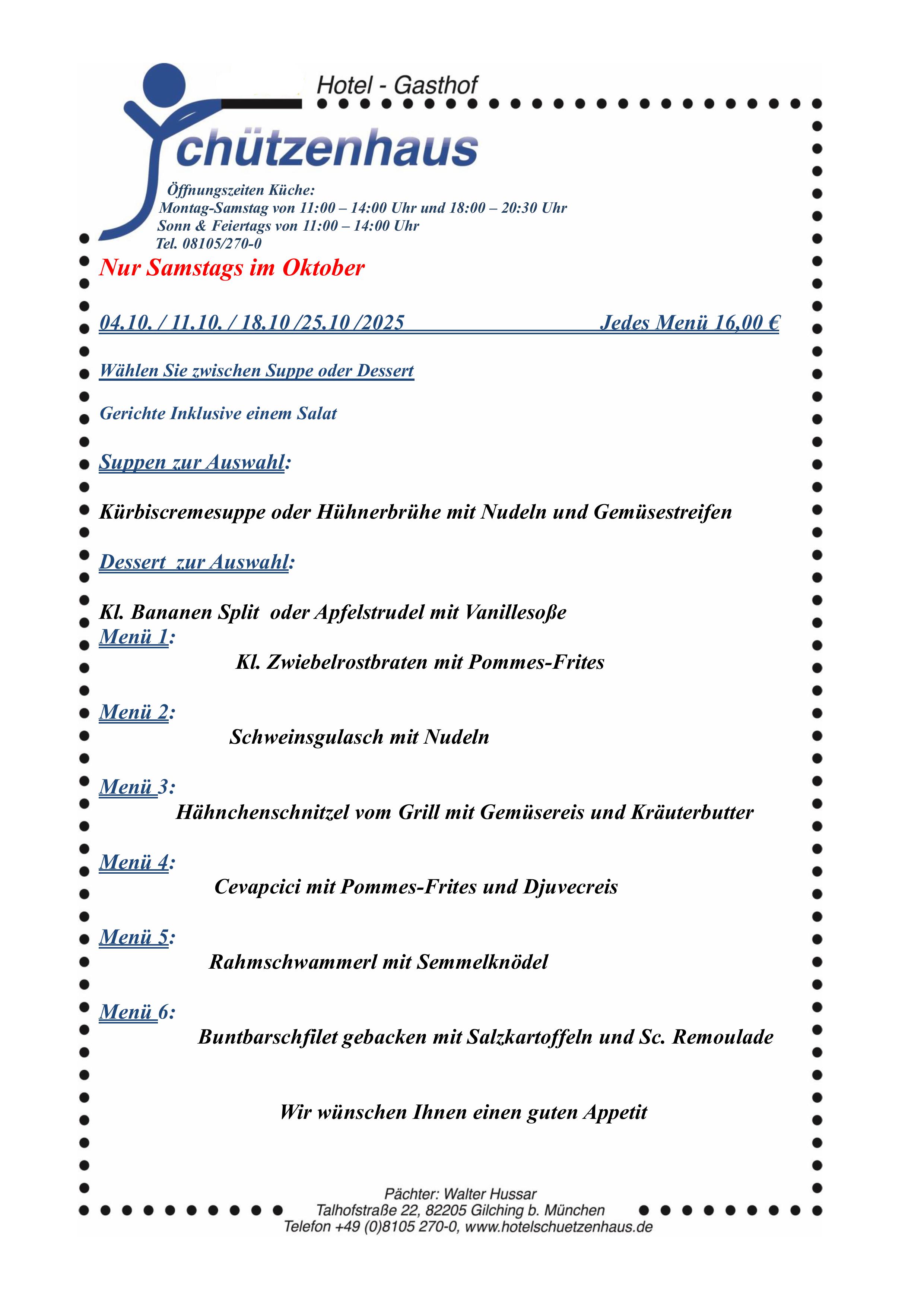 An Wochenenden bieten wir günstige Übernachtungsmöglichkeiten. Fragen Sie uns! Tel: +49 (0) 8105-270-0